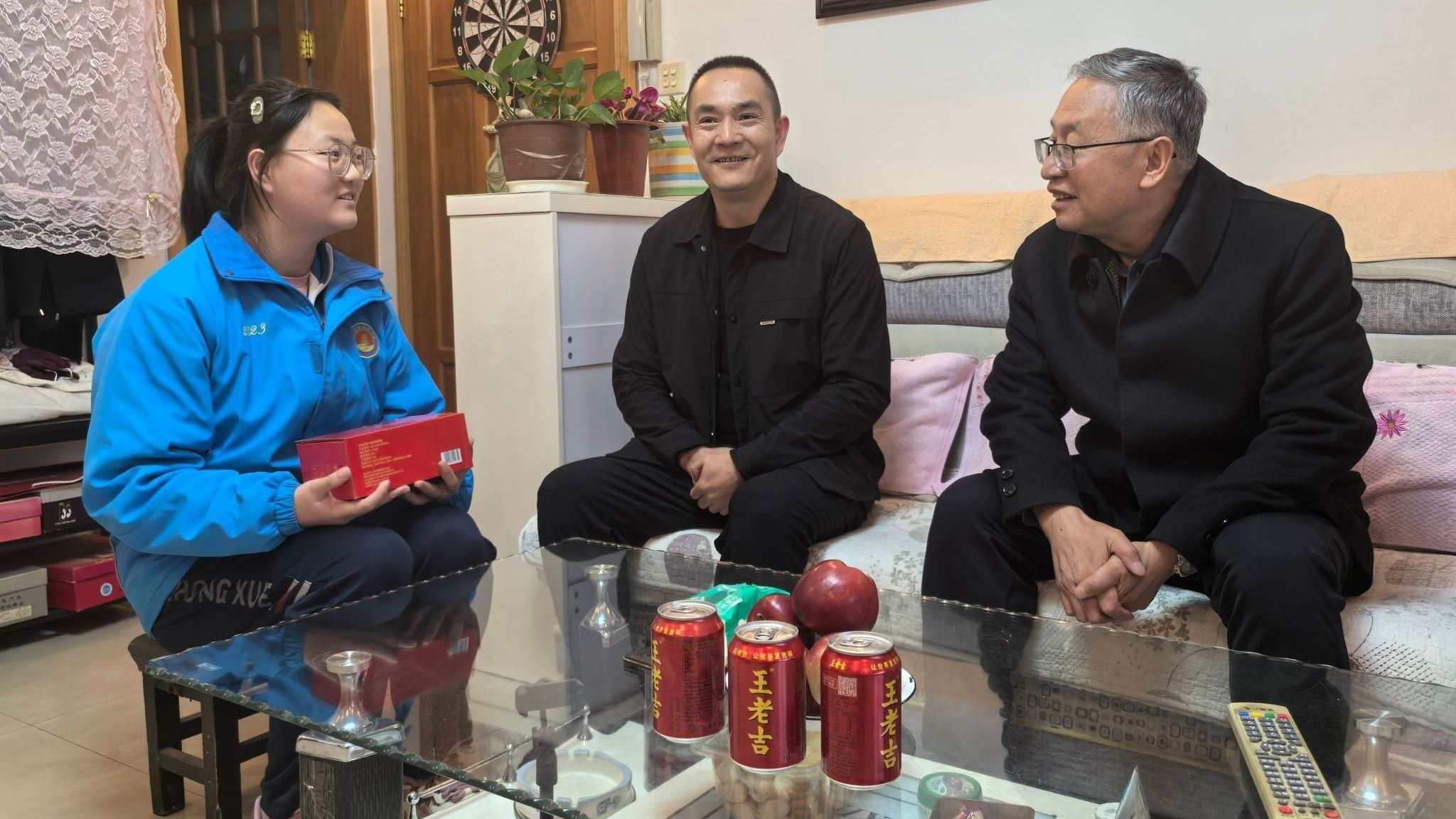 活动期间,高荣一行先后走访了文学院丁艳博士和基本建设与后勤管理处罗小虎两位老师家中,与他们及其就读高三的子女亲切交谈,详细了解孩子的学习情况和生活状态,并将护眼仪送到孩子手中。高荣勉励孩子们要科学规划、张弛有度,在刻苦学习的同时务必保重身体,特别是保护好“心灵的窗户”,以最佳的身心状态迎接挑战。